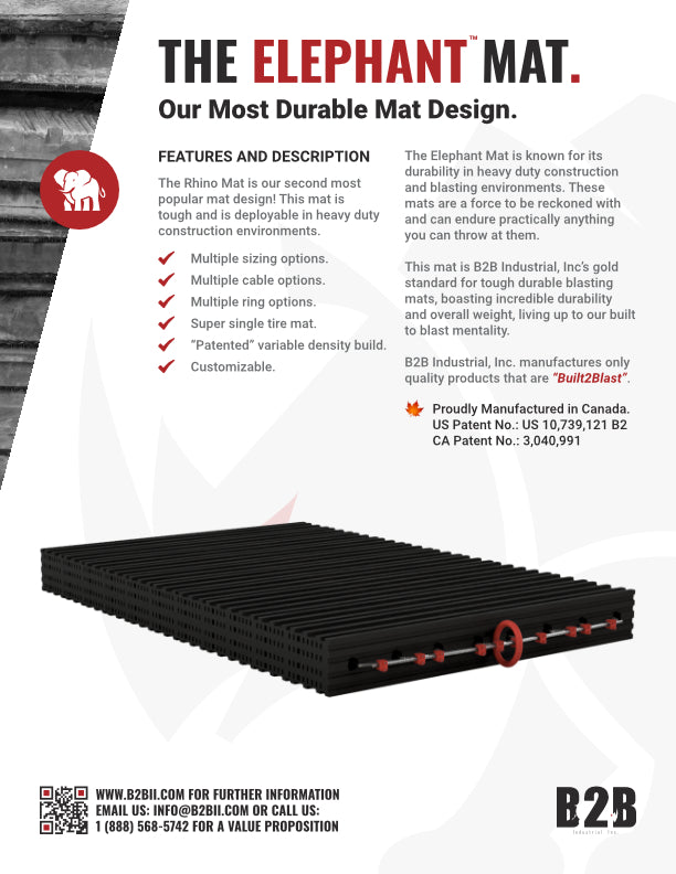 The Elephant Mat is known for its durability in heavy duty construction and blasting environments. These mats are a force to be reckoned with and can endure practically anything you can throw at them. This mat is B2B Industrial, Inc’s gold standard for tough durable blasting mats, boasting incredible durability and overall weight, living up to our built to blast mentality.